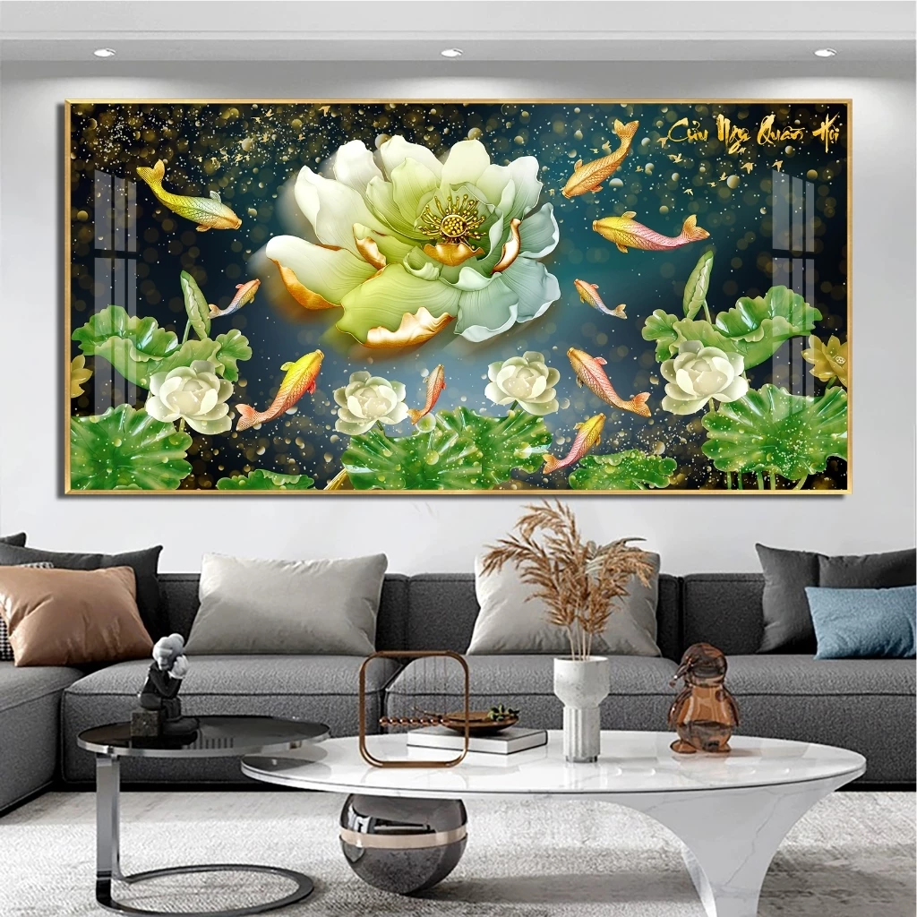 Tranh Cửu Ngư Quần Hội Tráng Gương Treo Phòng Khách, Quà Tặng Tân Gia, May Mắn, Tài Lộc C12