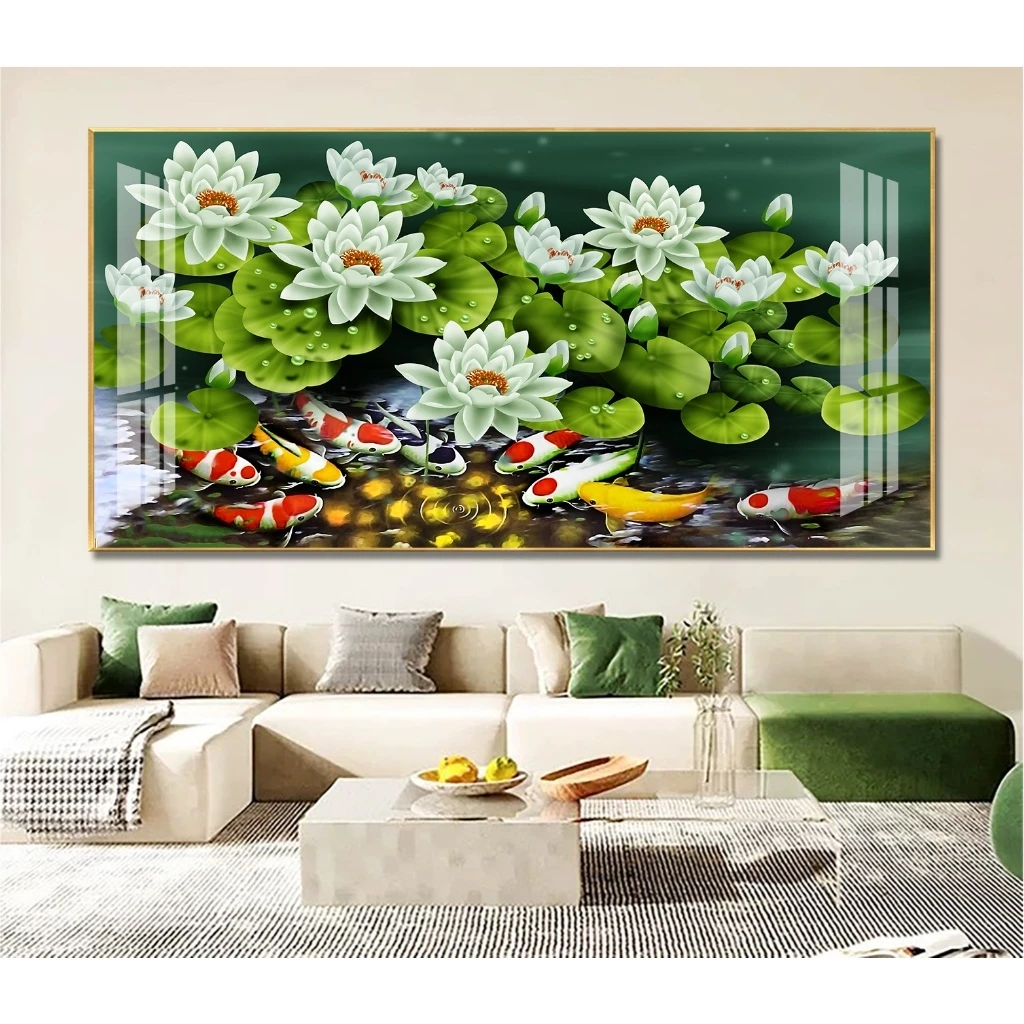 Tranh Cửu Ngư Quần Hội Tráng Gương Treo Phòng Khách, Quà Tặng Tân Gia, May Mắn, Tài Lộc C14