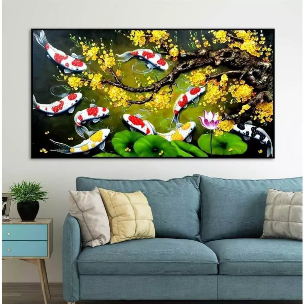Tranh Cửu Ngư Quần Hội Tráng Gương Treo Phòng Khách, Quà Tặng Tân Gia, May Mắn, Tài Lộc C9